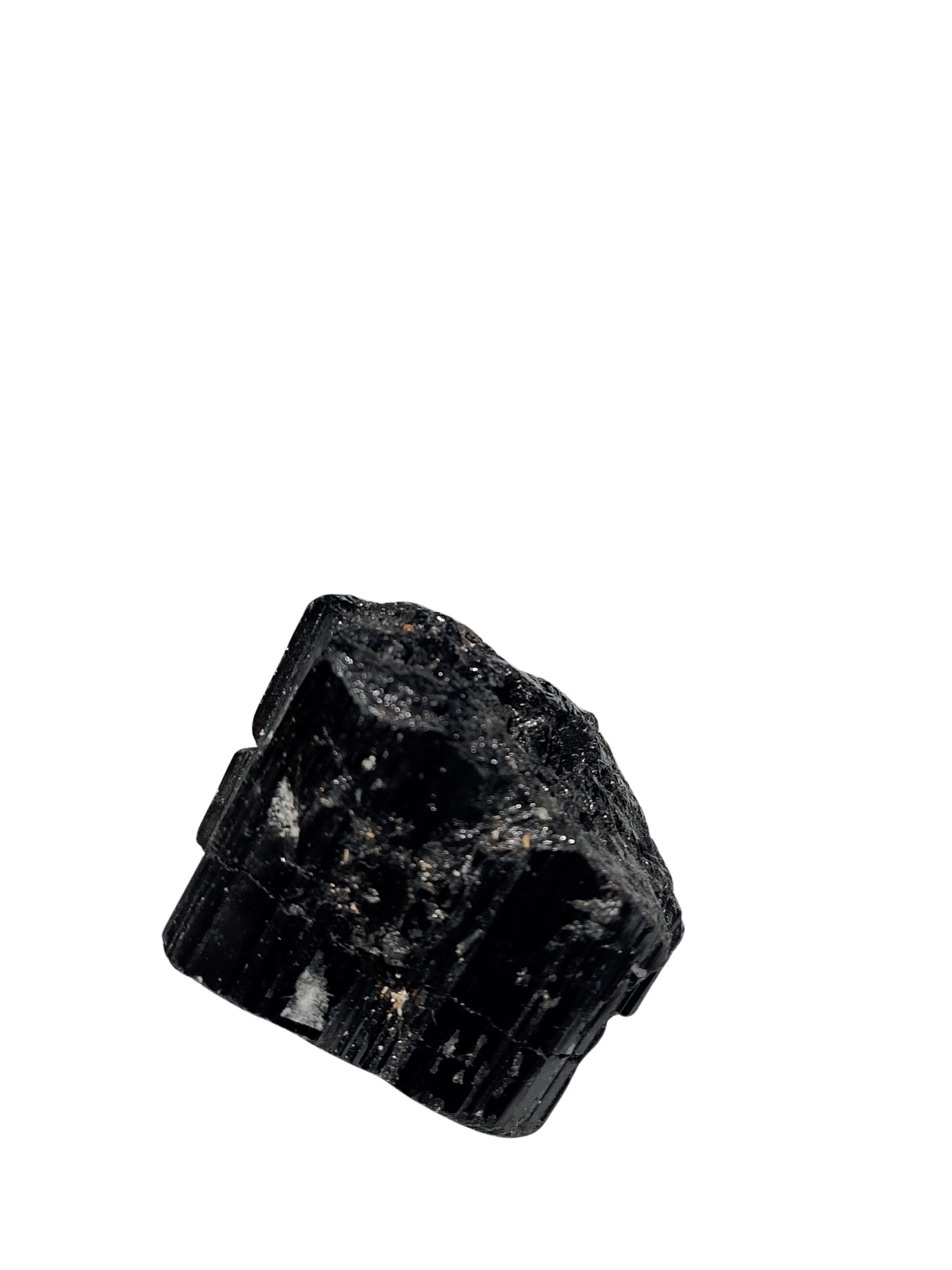 La tourmaline noire brute du Brésil, aussi appelée Schorl, présente plusieurs caractéristiques physiques qui permettent son identification et différenciation des imitations. Son poids de 44 grammes pour sa taille est significatif, témoignant de sa densité naturelle de 3.06 à 3.25, ce qui en fait une pierre relativement lourde par rapport à son volume.